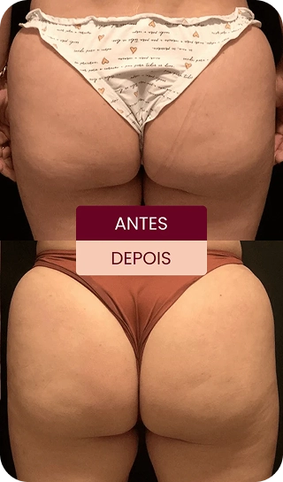 Las pruebas se realizaron con el uso diario de la crema Popozuda con acción termogénica + spray reafirmante con estímulo de colágeno, aplicados en las regiones con mayor acumulación de grasa y malestar.